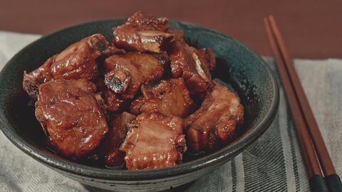 4. 待汁液变得浓稠,包裹住排骨时,即可关火。